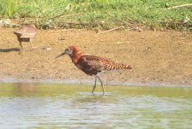 Summer-plumaged Ruff at Breech Pool/N Wall, and Sand Martins near Pagham Lagoon (photos: Andy House).