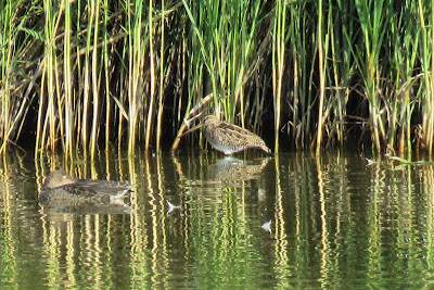 Along the wall there were another dozen Whitethroats, at least four Sedge Warblers, a Reed Warbler, a couple of Lesser Whitethroats  and tthree calling Cetti's Warblers, plus a Kingfisher that flew along Owl Water.