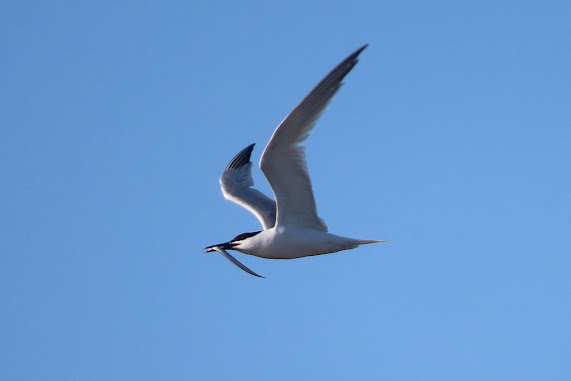 Church Norton: There wasn't much to see in the harbour on the full tide beyond a lot of Sandwich Terns and Black-headed Gulls, along with a handful of Common Terns, whilst c40 Mediterranean Gulls were hawking Flying Ants overhead.