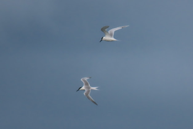 Pagham Spit: There were at least 50 Sandwich Terns, two Common Terns and a dozen Little Terns feeding in the harbour, with the latter species being very active around the two newer islands.
