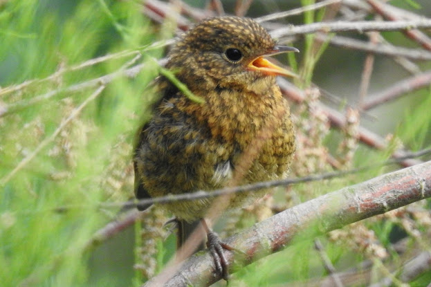 It was quiet along the wall, with just a Shelduck and a Grey Heron on the Breech Pool first thing, and later three Black-tailed Godwits were feeding at the front edge, and a juvenile Robin was by the sluice gates.