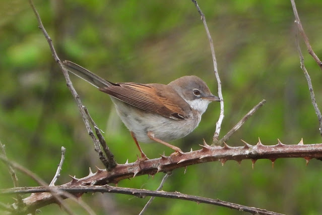 Medmerry: Chainbridge to Ham - A Whinchat, a Stonechat and a Corn Bunting were along the paths this afternoon,, along with ten Whitethroats, a Reed Bunting and half a dozen Reed and Sedge Warblers, and four Swallows went over. (S&SaH)