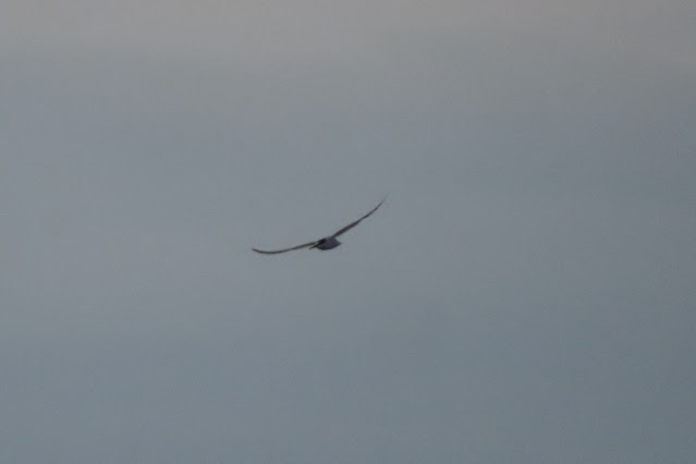 Also, a flock of 20 Mediterranean Gulls flew west along the shoreline and a pair of Stock Doves flew into Priory Wood, but there were just a few hirundines, including two Sand Martins. (IP)
