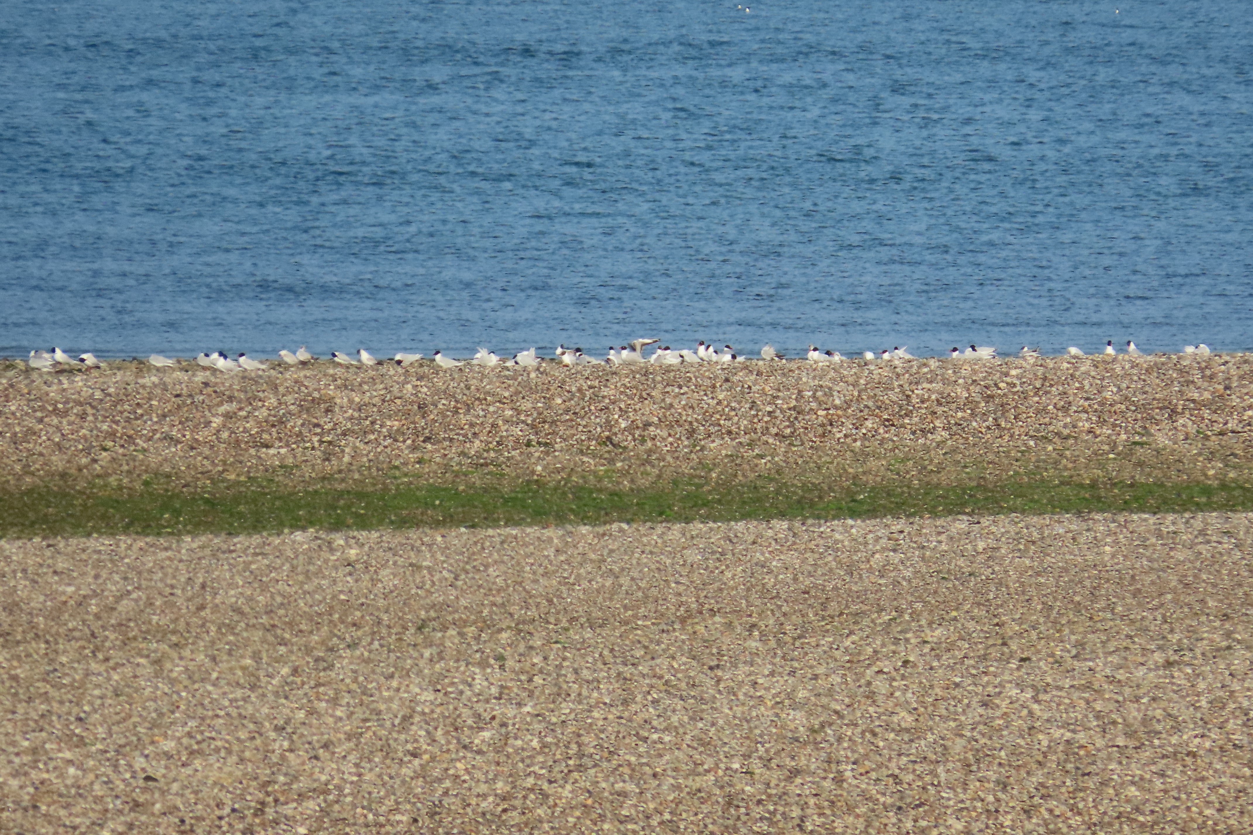 Church Norton: The harbour was very busy again this morning, with at least 60 Little Terns, half a dozen Common Terns, 100+ Sandwich Terns and 400+ Mediterranean Gulls about, plus a Grey Heron, half a dozen Little Egrets, a dozen Shelducks and a Great Crested Grebe, whilst waders included five Curlews, a dozen Redshank and the usual Oystercatchers, including the two juveniles on Tern Island, plus a dozen Turnstones along the beach and a flock of seven Black-tailed Godwits that flew west over the Severals.